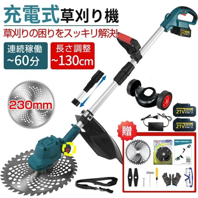 草刈機 草刈り機 電動刈払機 電動草刈機 充電式 コードレス草刈機 伸縮式 補助輪 替刃3種類 替刃8枚付き 21v 9インチ ブラシレスモーター コスパ抜群 女性 軽量 芝刈り機 刈払機 金属刃 角度調整 説明書