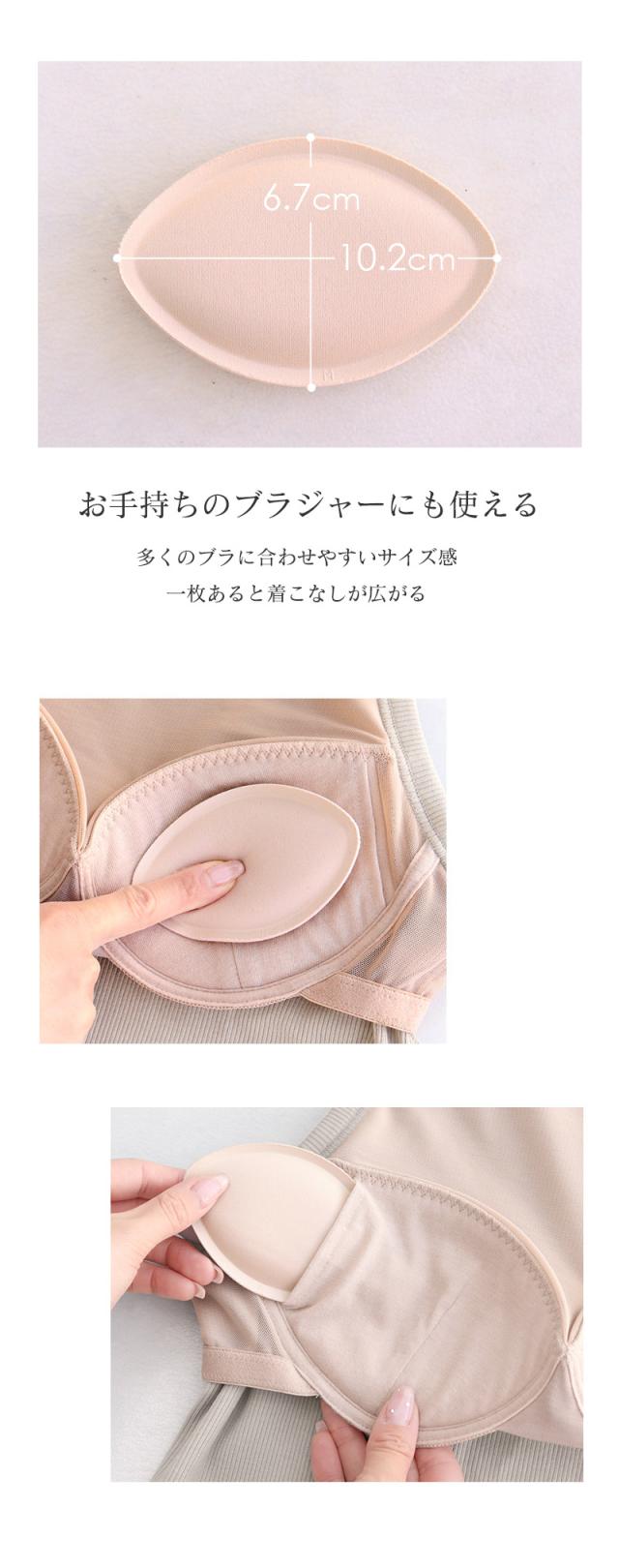 | ポリエステル100% 【幅広いブラジャーに対応】 パッドポケットのあるブラジャーにもご使用いただけます。 ※A〜Cカップの場合、パッドの端がポケットに収まりきらないことがありますが、着用に支障はございません。 そのまま安心してお使いください。 |