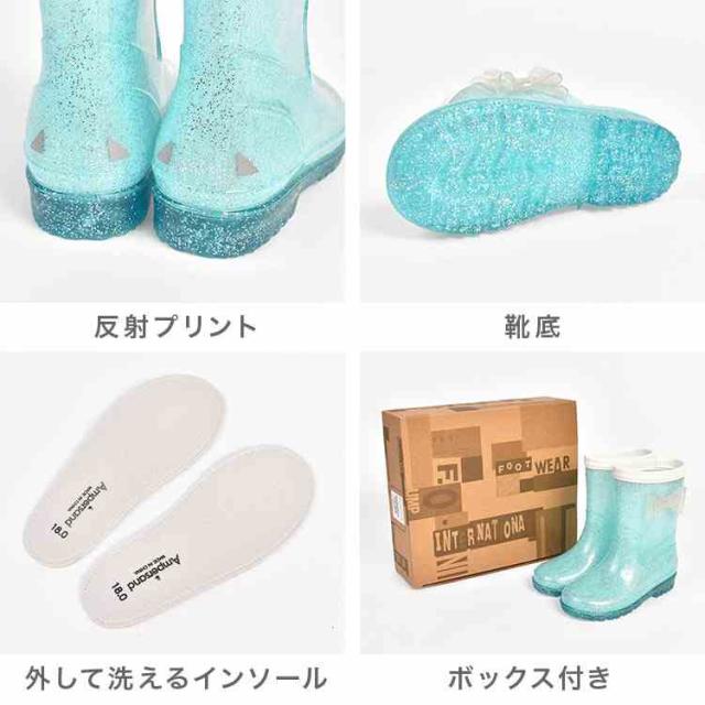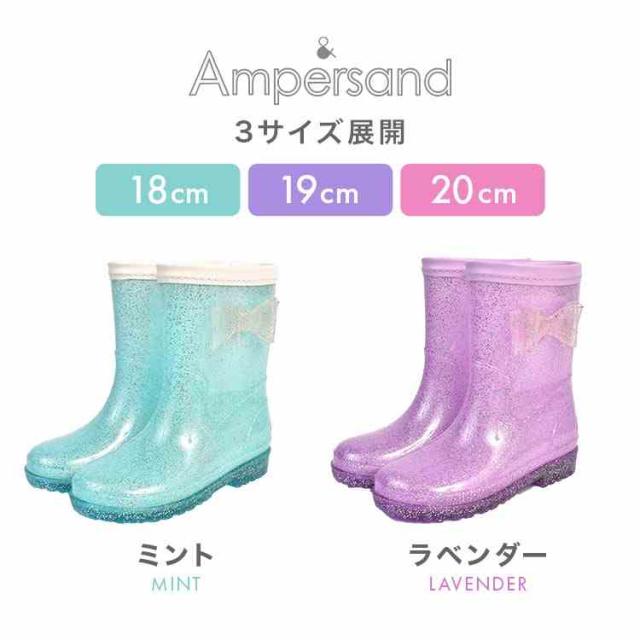 レインブーツ キッズ 長靴 子供 女の子 Ampersand アンパサンド おしゃれ かわいい 18cm 19cm 20cm リボン キラキラ ラメ 柔らかい 反射材 リフレクター 小学生 低学年 幼稚園 雨靴 雨具 キラキラレインシューズ L164016 通園 通学 子供靴 ラベンダー ミント パープル 水色