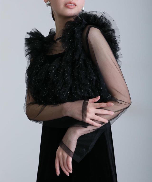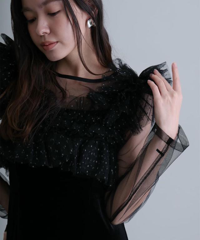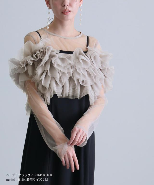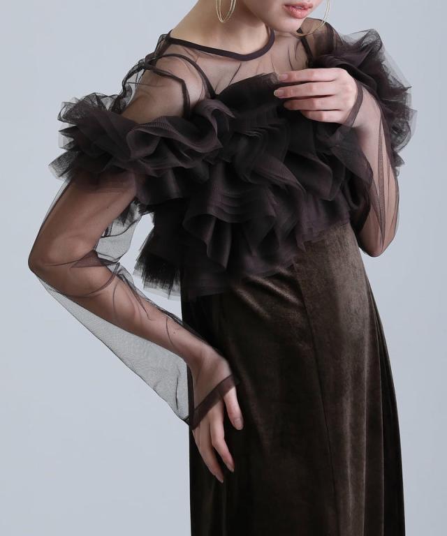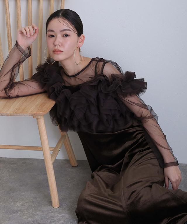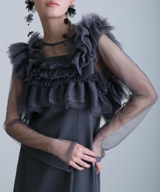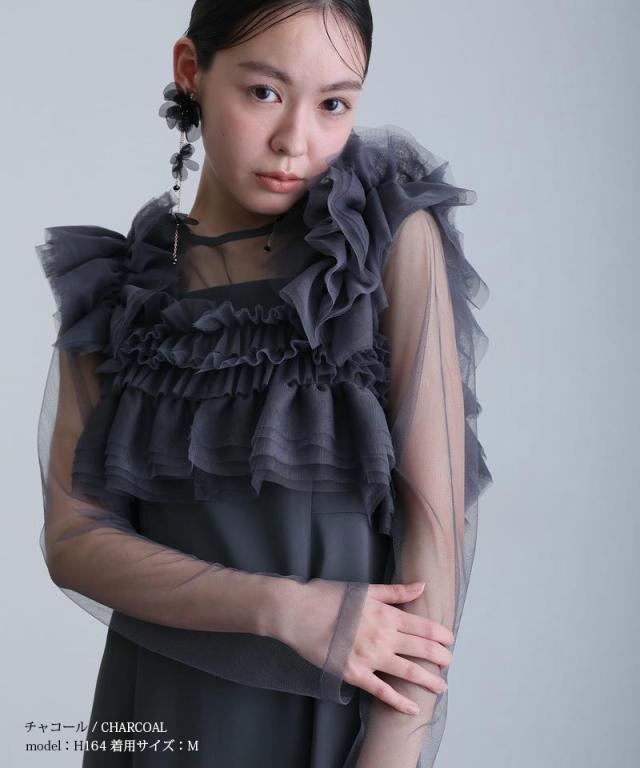 シアー感のあるチュールインナーが抜け感と女性らしさをプラス。