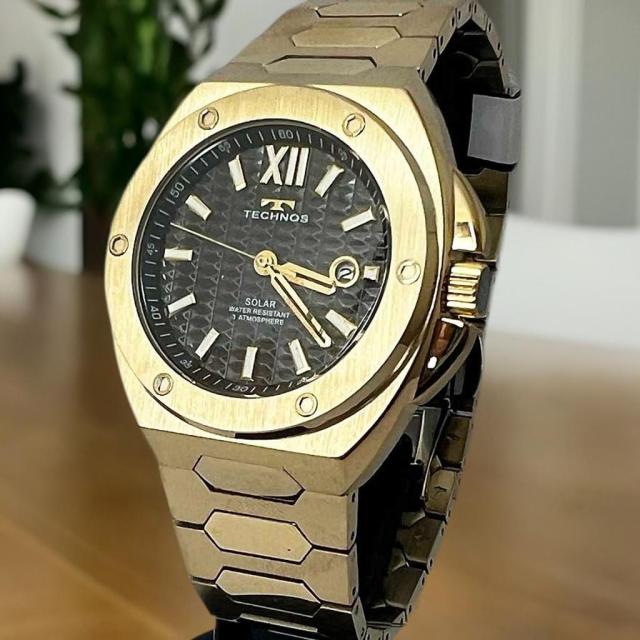 【お値段以上の造りです!】テクノス 腕時計 メンズウォッチ 電池交換不要ソーラーです TECHNOS technos 腕時計 ラッピング無料 手書きのメッセージカード T9C04GB ブラック文字盤ラグジュアリーな雰囲気の美しい腕時計 アルパイン