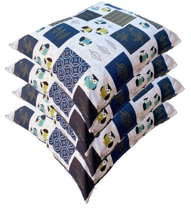 座布団カバー 4枚 組 ふくろうパッチ 約 55×59 cm ブルー 【 日本製 】 【 銘仙判 】 【 クロネコゆうパケット便対応限定 】 【 フロアークッションカバー 】 55 59