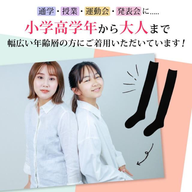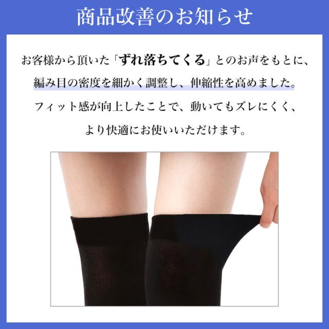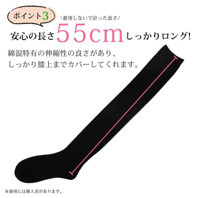 そんな悩みを解決するため、幅広のくちゴムで太もものお肉が乗りにくく、スラっとした綺麗な脚を実現してくれる55cm丈のニーハイソックスです。