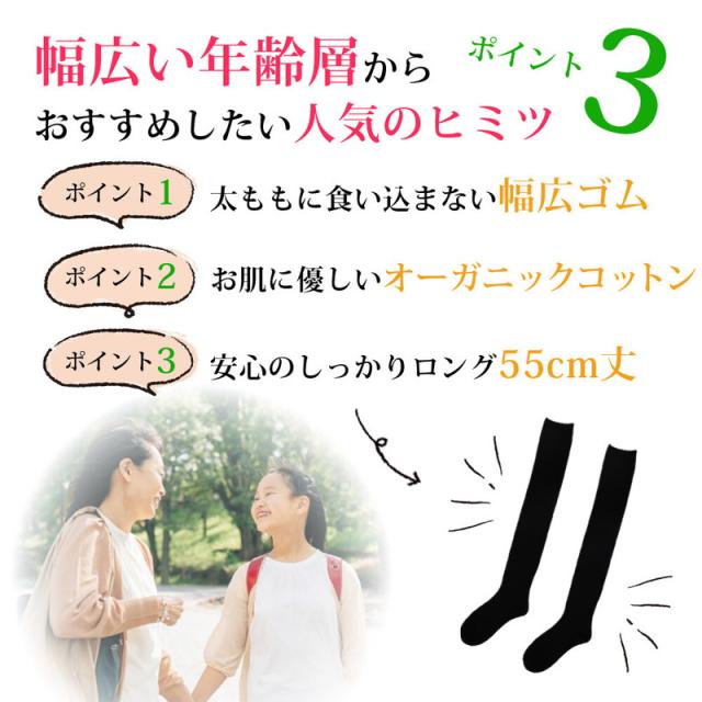 【2足セット】ニーハイソックス ニーハイ ソックス オーバーニー 綿 オーガニックコットン 日本製 レディース 靴下 通学 スクール 黒 ブラック 【メール便送料無料】