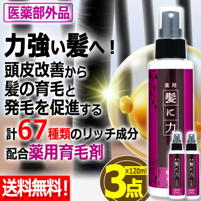 3点 脱毛予防×発毛促進×頭皮改善!薬用育毛剤 髪に力120ml 3点 医薬部外品 薄毛 脱毛 発毛促進 頭皮 ふさふさ クログロ スカルプケア