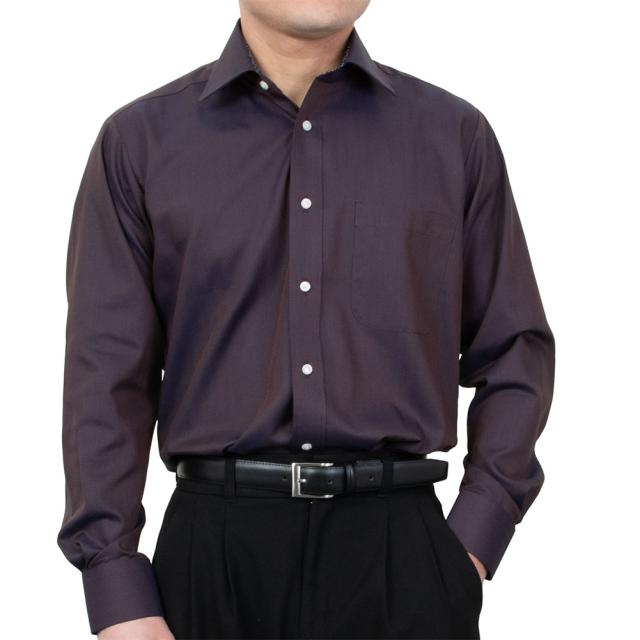 メンズ ドレスシャツ 長袖 形態安定 スリムフィット セミワイドカラー ブラウン フォーマルシャツ 【HWD975-003】