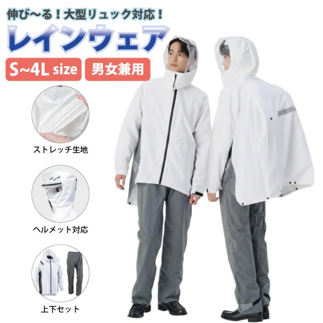 レインウェア 通勤通学 リュック対応 ストレッチ 伸びる 上下セット 男女兼用 ヘルメット対応フード 自転車 アクティブライドスーツ セパレート 中学生 高校生 雨具 カッパ FS-7110