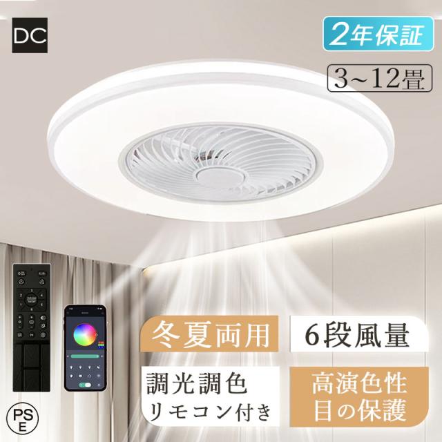 シーリングファンライト led dcモーター シーリングファン 12畳 ファン付き照明 調光調色 おしゃれ 北欧 風量調節 リモコン付き 脱衣所 リビング サーキュレーター 天井直付灯 空気循環 天井扇風機 寝室 羽付きシーリングライト 節電 省エネ APP対応 スマホ 2年保証