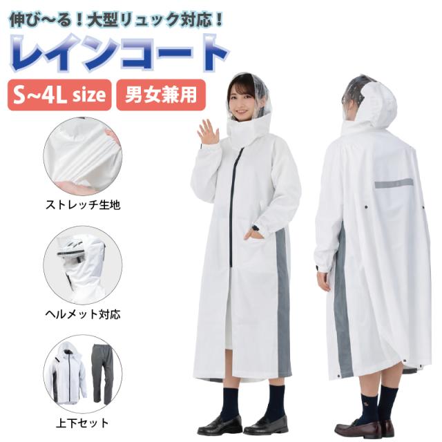レインコート 通勤通学 リュック対応 ストレッチ 伸びる 男女兼用 ヘルメット対応フード 自転車 アクティブライドコート レインウェア 中学生 高校生 雨具 カッパ FC-7120