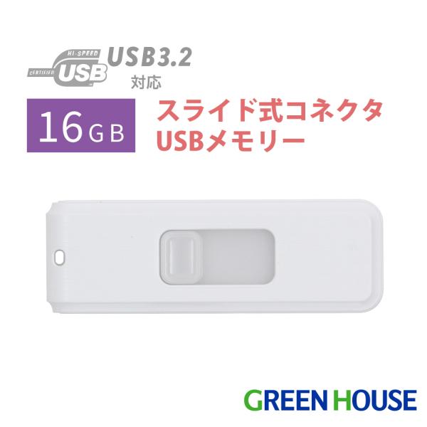 USBメモリー 16GB スライド式 コネクタUSBメモリー 転送速度最大5Gbps USB3.2 Gen1 ストラップホール付 データ PC GH-UF3SA16G-WH グリーンハウス