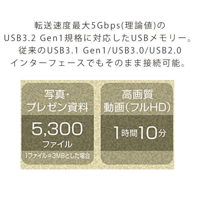 転送速度最大5Gbps(理論値)のUSB3.2 Gen1規格に対応したUSBメモリー
