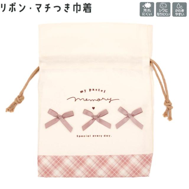 メール便 OK 巾着 給食袋 女の子 向け マイパステルメモリー ラテ リボン付き クーリア おしゃれ で かわいい 文房具