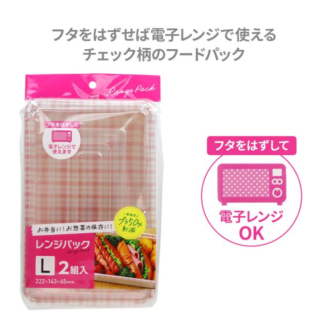 フタをはずせば電子レンジで使える、かわいいチェック柄のフードパック。