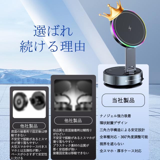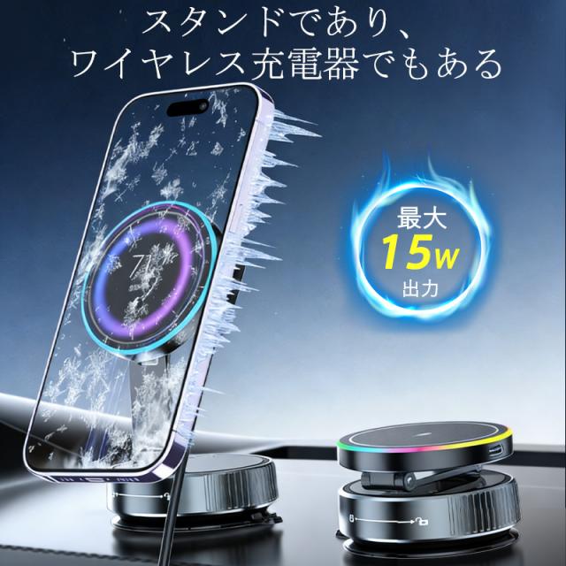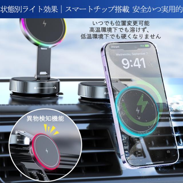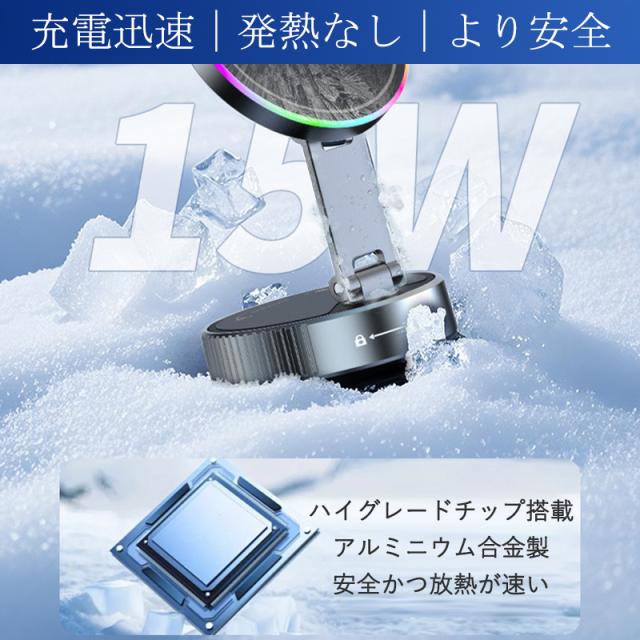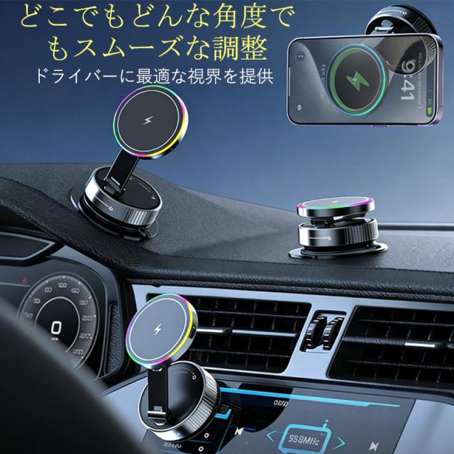 ワイヤレス充電器 車載携帯充電器 15W急速充電 スマホホルダー 車載ホルダー マグネット 360°回転 リング付き 超強吸着力