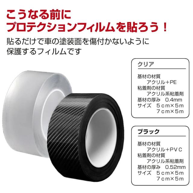 プロテクションフィルム 車 フィルム 傷防止 テープ 汚れ 衝撃 ドアエッジモール 車ドア保護 着脱簡単 透明 クリア 黒 ブラック 5cmx5m 7cmx5m 車用品 アクセサリー キズ防止 ドア ボンネット 愛車 擦り傷 よごれ カー用品 簡単