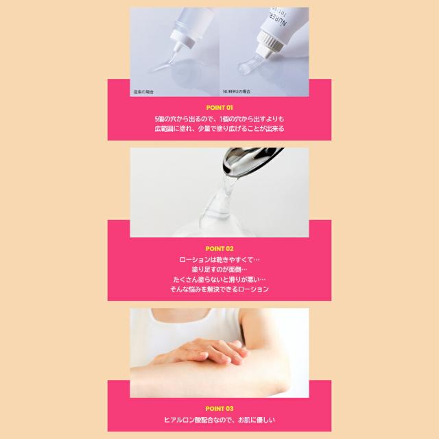 **NURERU スタンダードジェル(250ml)**は、 使いやすさと持続性を両立した水溶性保湿ジェルです。 液は標準的な硬さで広範囲に塗りやすく、使いやすさ◎ 5つ穴ノズルにより均一な塗布が可能 柔らかい容器で液の押し出しもスムーズ 保湿成分としてヒアルロン酸を配合 化粧品販売届出済、日本国内製造の安心品質 ローション感覚で使用できる中粘度ジェルとして、毎日の保湿ケアやマッサージ用途にもおすすめです。 |