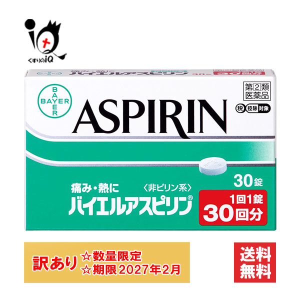 訳あり【指定第2類医薬品】★バイエルアスピリン 30錠(30回分)【佐藤製薬】【使用期限2027年2月】痛み・熱に 非ピリン系 アスピリン アセチルサリチル酸 眠くなる成分は入っていません 頭痛 歯痛 月経痛 生理痛