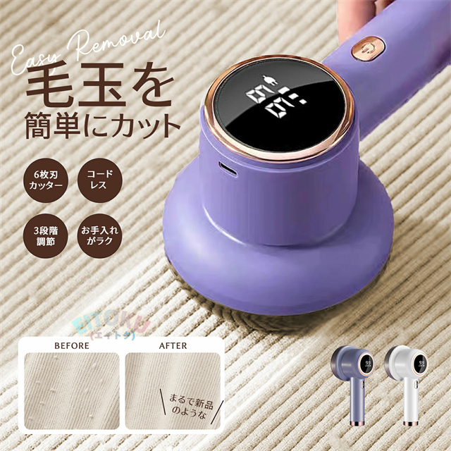毛玉取り けだまとり 電動 LCD液晶ディスプレ 毛玉取り機 強力6枚刃 スピード3段階調整 様々な衣類に対応 切れ味アップ 生地を傷めない 毛玉取り器 USB充電式 コードレス使用可 持ちやすい 毛玉とり