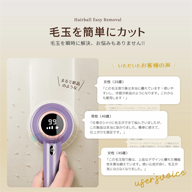 - 使用時、持ちやすく楽に毛玉取りができました。