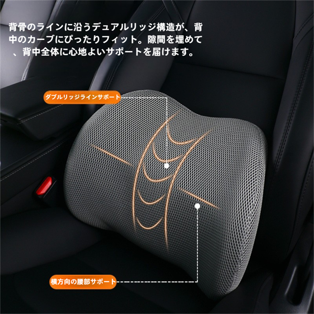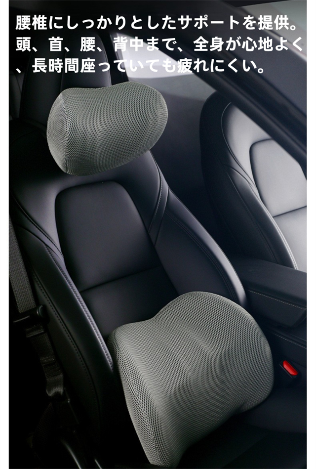 車用クッション ヘッドレスト 腰クッション 車 低反発 背もたれ ネックパット 首サポート 腰痛サポート 車載用クッション 低反発 リラックス 通気性 人間工学 椅子用 長距離運転 疲れない