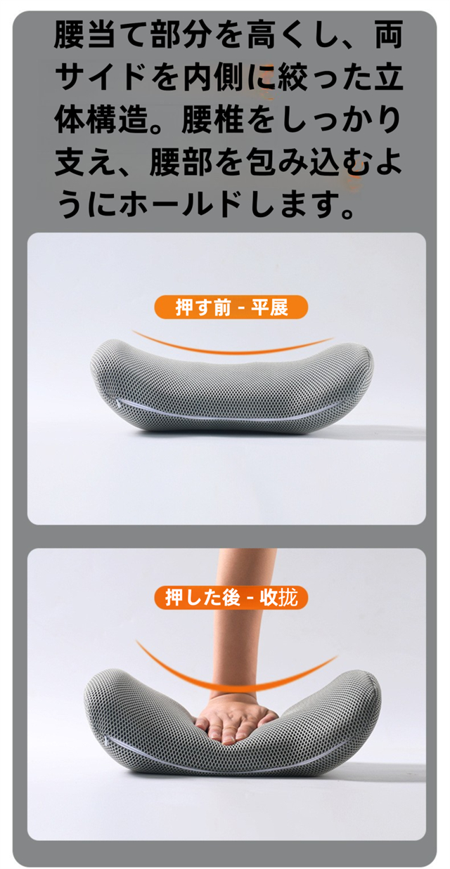 腰クッション:長さ41.5*幅29*高さ12.5cm、重量450g