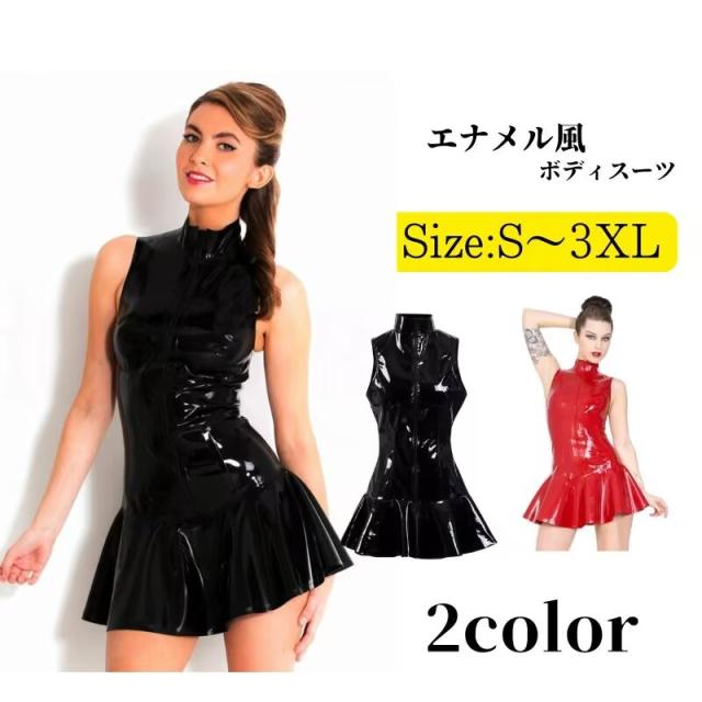ボンデージ ドレス ワンピース エナメ ホビー 特集 S M L XL XXL XXXL レッド ブラック