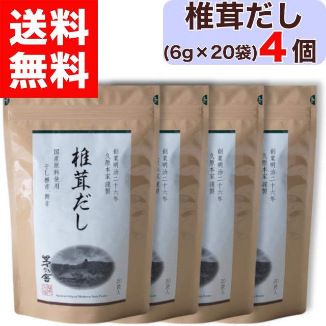 【 茅乃舎 】 椎茸だし ( 6g × 20袋入 ) × 4個 茅乃舎 椎茸 だし かやのや かやのやだし 茅乃舎だし 出汁 あごだし だしパック 出汁パック 無添加 kayanoya 国産 4袋 4パック 御歳暮 贈り物 御歳暮ギフト お中元 お歳暮