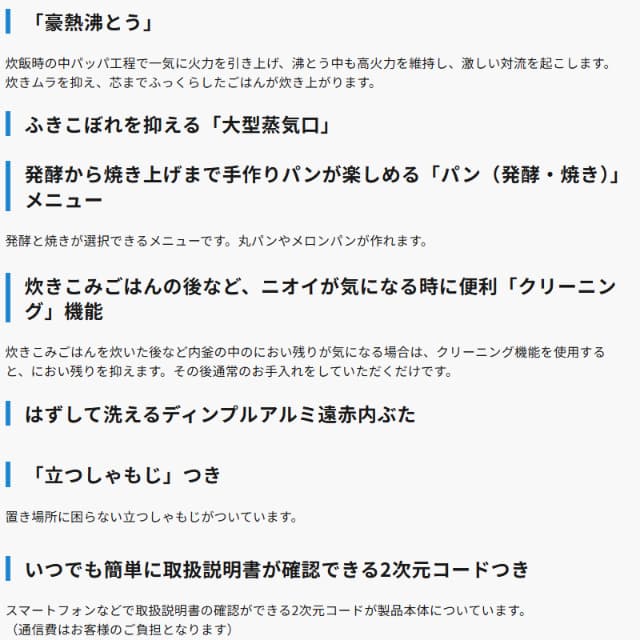 - 大火力で炊くからふっくらおいしいハイパワー「495W(最大電力)」+「全面加熱」