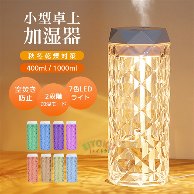 ♪癒しの卓上加湿器♪加湿器 卓上 小型 卓上 加湿器 大容量 加湿器 薔薇デザイン 静音 7色LEDライト コンパクト 強力 お手入れ簡単 加湿機 6畳 省エネ 空焚き防止 一体型水漏れ防止 寝室 部屋 乾燥対応 プレゼント ギフト誕生日
