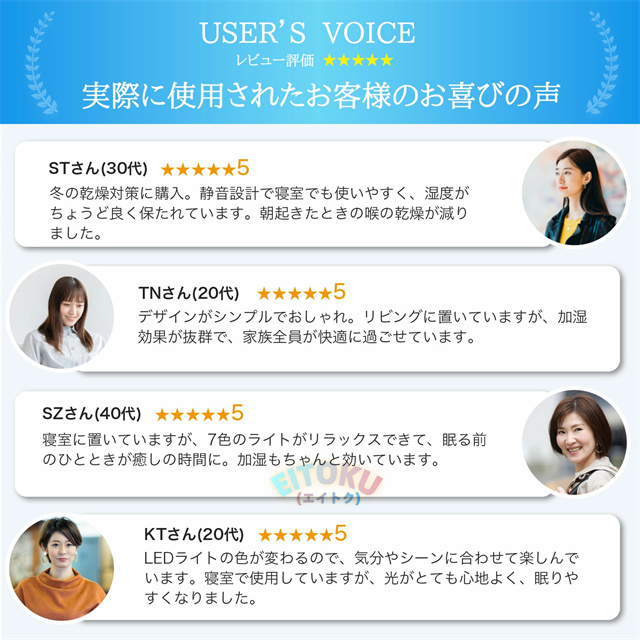 - 10時間以上加湿できるものがよく購入