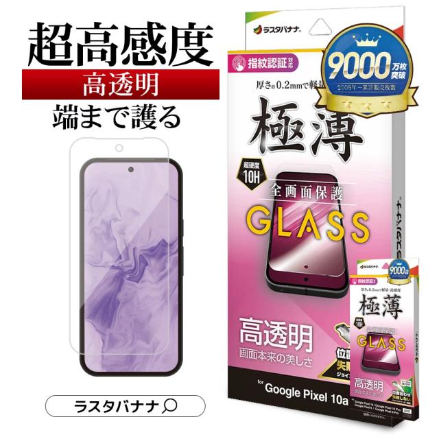 Google Pixel 10a Google Pixel 10 Google Pixel 10Pro Google Pixel 9 Google Pixel 9Pro ガラスフィルム 全面保護 高光沢 高透明 クリア 0.2mm 薄型 極薄 高感度 硬度10H 指紋認証対応 簡単貼り付けガイド グーグルピクセル 保護フィルム GP5242P10A ラスタバナナ