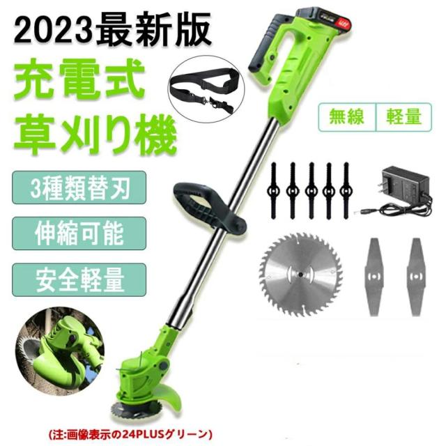 セット 草刈り機 充電式 草刈機 エンジン 軽量 電動草刈り機 充電式 コードレス 多機能 伸縮角度調整 替刃付き DCモーター 芝刈り機 刈払機 草刈り機 女性 安全 無線
