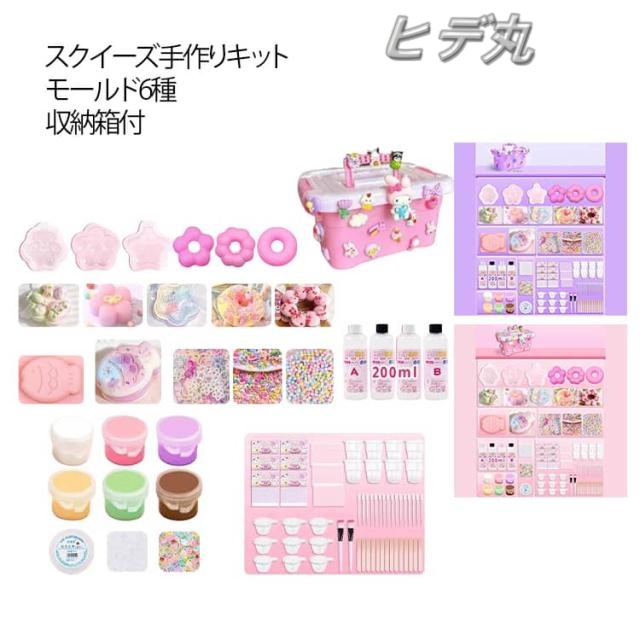 | サイズについての説明 | セット内容:収納ケース、シリコンモールド×6、スクイーズジェルAとB200ml、スクイーズ用着色剤×6(色ランダム発送)、パールリボン*20、飾りボール*2、EVA袋*10、ジッパー袋*2、カップ*2、30ml分膠カップ*10、ブラシ*1、かき混ぜ棒*10、ワセリン、スポイト*3、フロックパウダー、スパンコール |