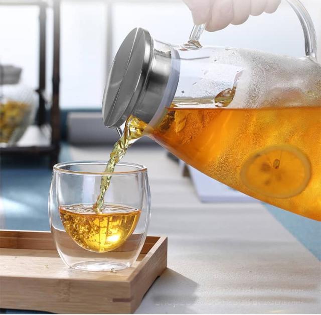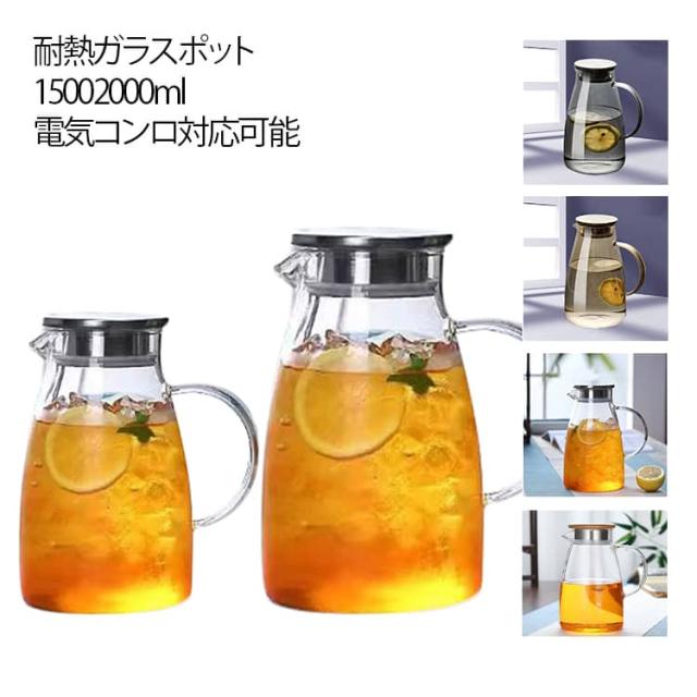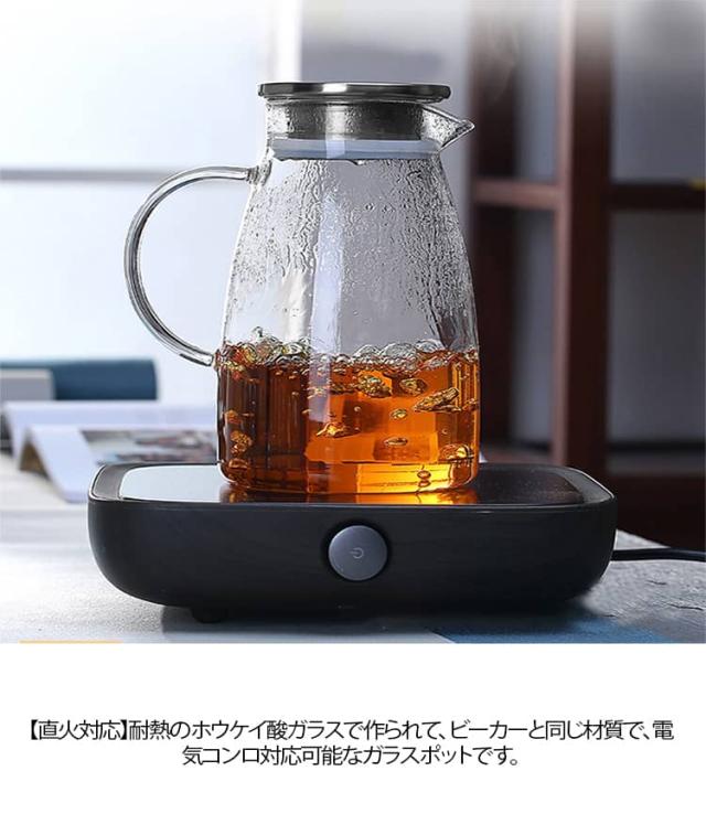 【1500ML/2000ML】ガラスケトル 直火 耐熱ガラスポット ティーポット 耐熱ガラス 1.5リットル 2リットル 直火電気ケトル対応 ホウケイ酸ガラス ピッチャー ステンレス茶こし一体型蓋 2000ML