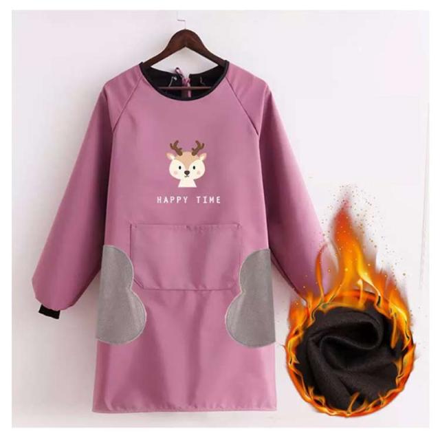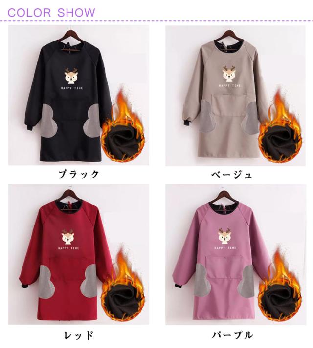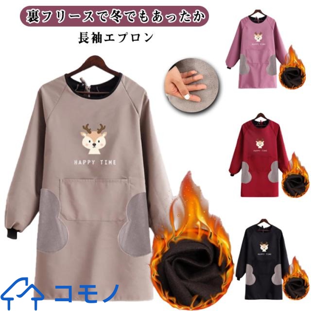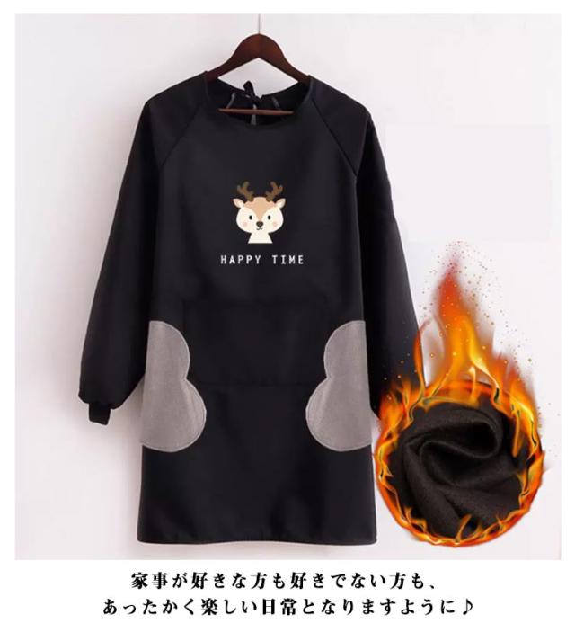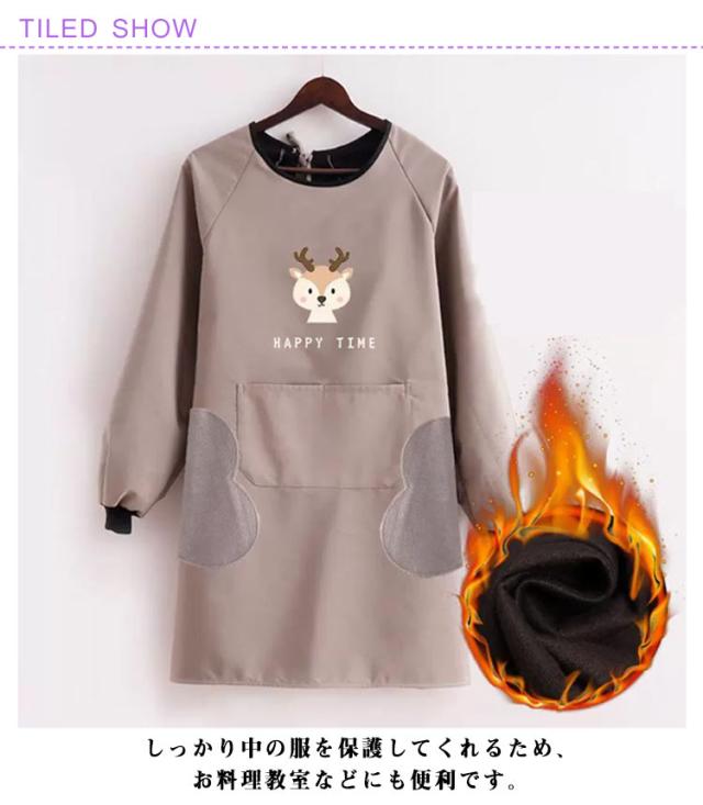 防水 裏起毛で真冬もあったか 裏フリース 長袖エプロン 大きなポケット 袖口リブ 割烹着 撥水 裏ボア 袖付 袖カバー 腕カバー 冬用エプロン 冬 あたたかい フリース 秋冬 暖かい 裏起毛 韓国 おしゃれ オシャレ 北欧風 送料無料