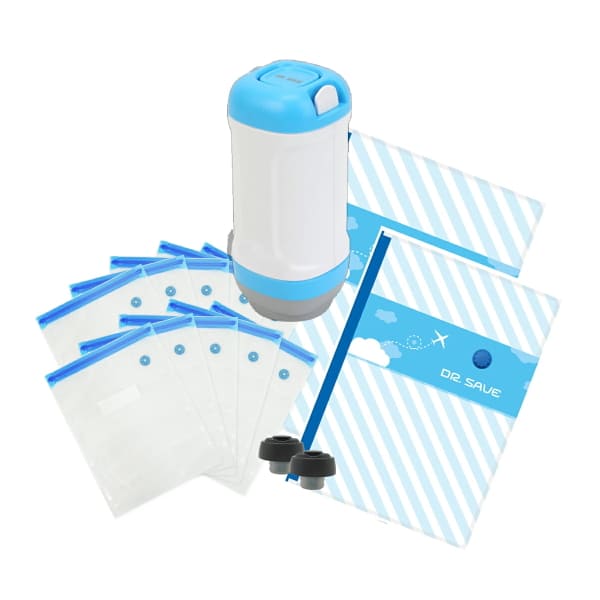 Dr.Saveを真空バッグのバルブの上に載せ、スイッチを押すだけで吸気が始まります。■小型なのに吸引力は強力です。■音が静かです。■動作時間約120分(自社調べ)■食品検査証明書取得済み ■更には!お持ちのフードバッグや、真空保存容器など、吸引バルブの直径が25mm以下の場合は使用できます。※一部合わない形状のものがあります。【セット内容】本体、トラベル用バッグL(50×70cm)1枚、S(40×60cm)1枚、食品用バッグ(34×26cm)10枚、ワイン用ワインセーバーキャップ2個、スライダー1個、電池別売り(アルカリ単三電池3本使用)