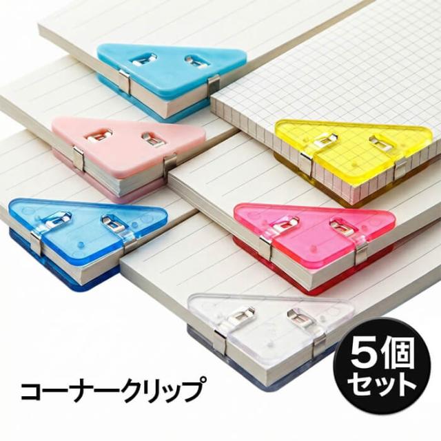 【書類の角を守る】コーナークリップ 5個セット 三角クリップ 書類 クリップ インデックス ブックマーク メモクリップ 文房具 かわいい 送料無料