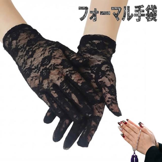 【急な弔事に】フォーマル手袋 黒 レース 冠婚葬祭 葬式 お通夜 法事 ネイル隠し 手袋 シミ隠し レディース 慶弔両用 ブラック