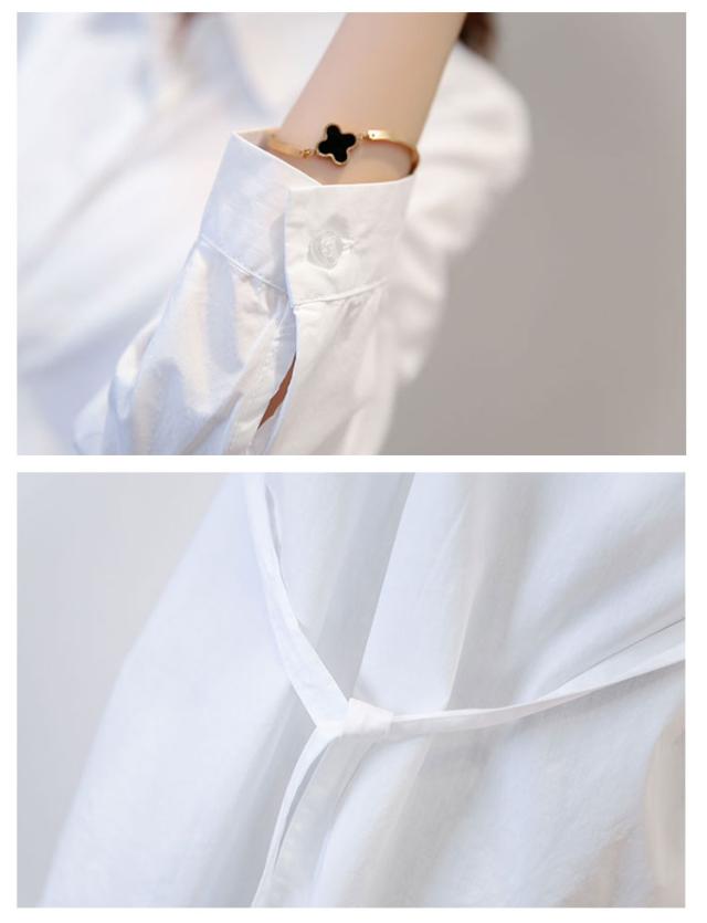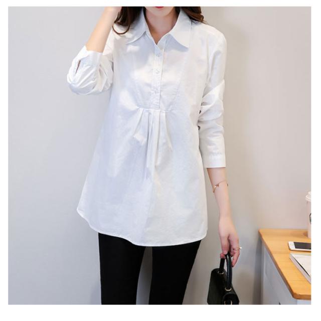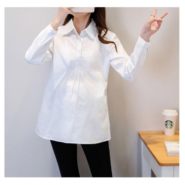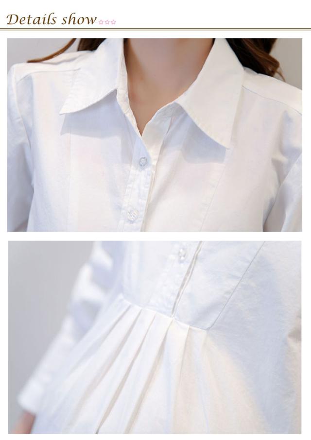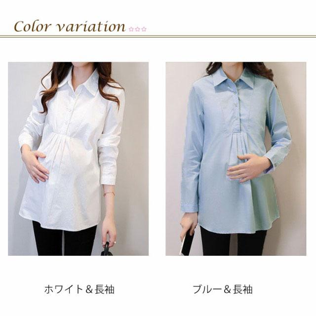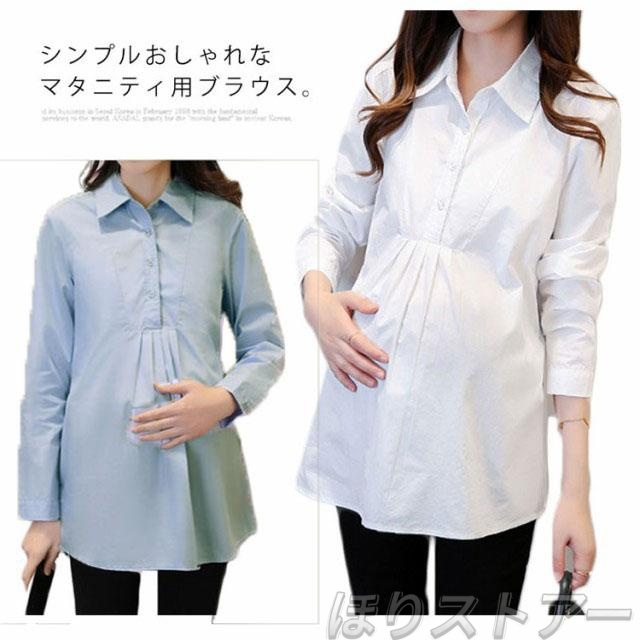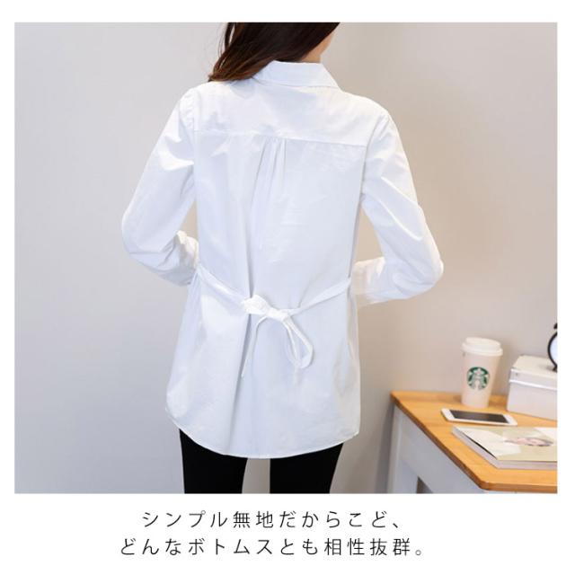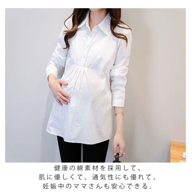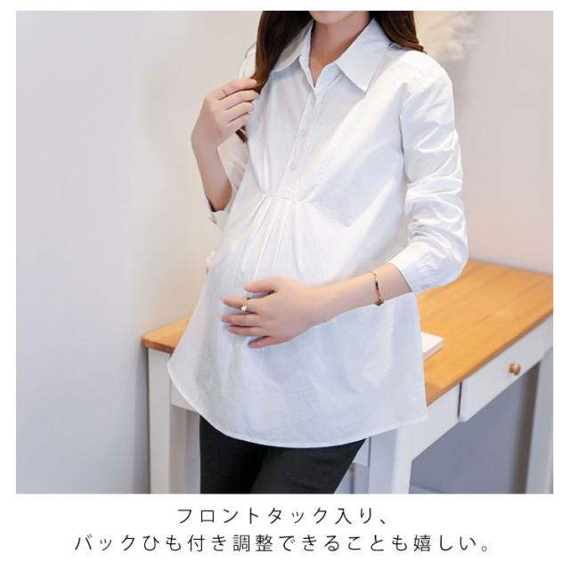 マタニティ服 シャツ ブラウス トップス マタニティウエア マタニティブラウス チュニック 長袖 白シャツ 産前産後 妊娠 無地 バック紐付き