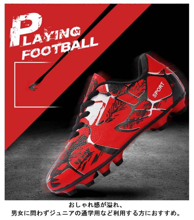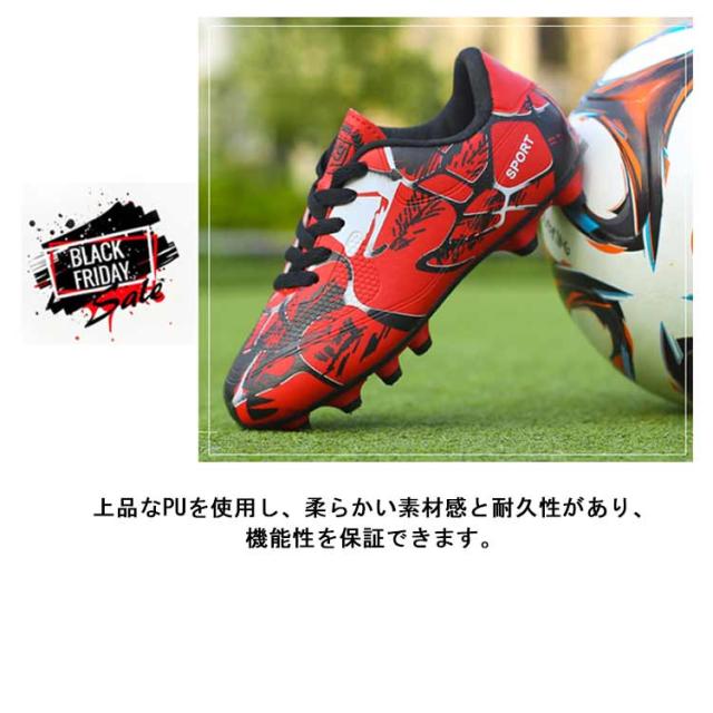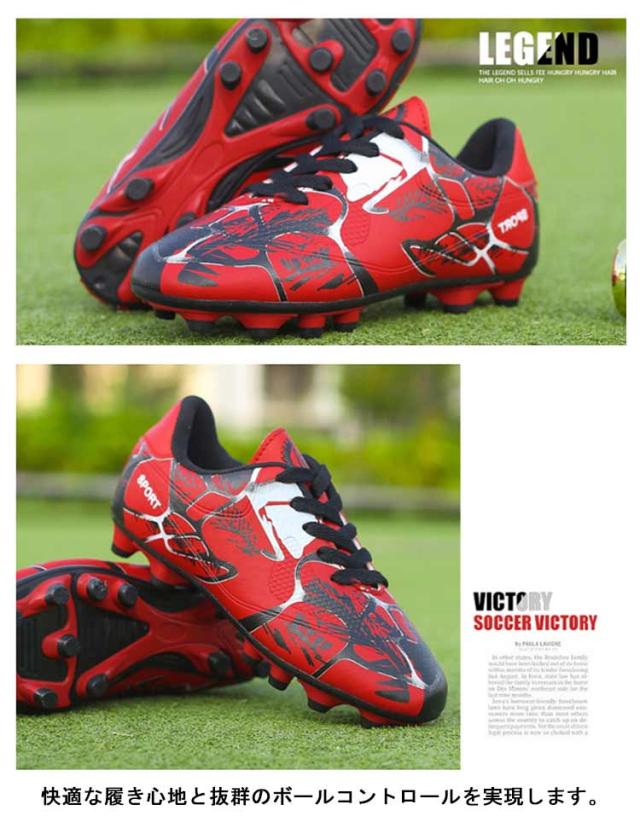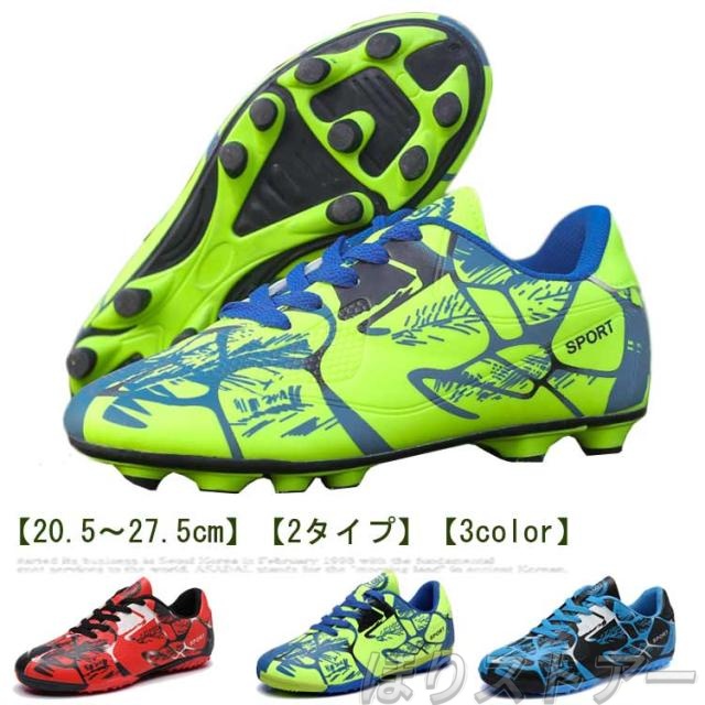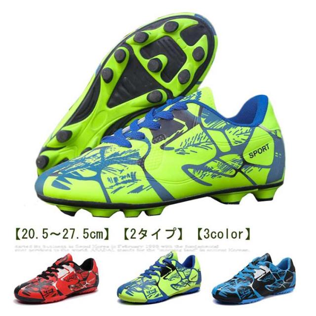 | 【20.5?27.5cm】【2タイプ】【3color】 サッカーのトレーニングや試合などで履くサッカーシューズ。 靴底にはスタッドが付いて、グリップ力が強くて、滑りにくく丈夫なので、スポーツシューズとしては最適。 全体的に足にフィットするように作られており、適度なクッション性もあります。 上品なPUを使用し、柔らかい素材感と耐久性があり、機能性を保証できます。 快適な履き心地と抜群のボールコントロールを実現します。 おしゃれ感が溢れ、男女に問わずジュニアの通学用など利用する方におすすめ。 土グラウンド、天然芝、人工芝に対応しています。 | |