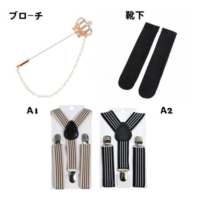 ・8点セット内容:ジャケット+ズボン+ベスト+サスペンダー+ネクタイ+蝶ネクタイ+ブローチ+靴下