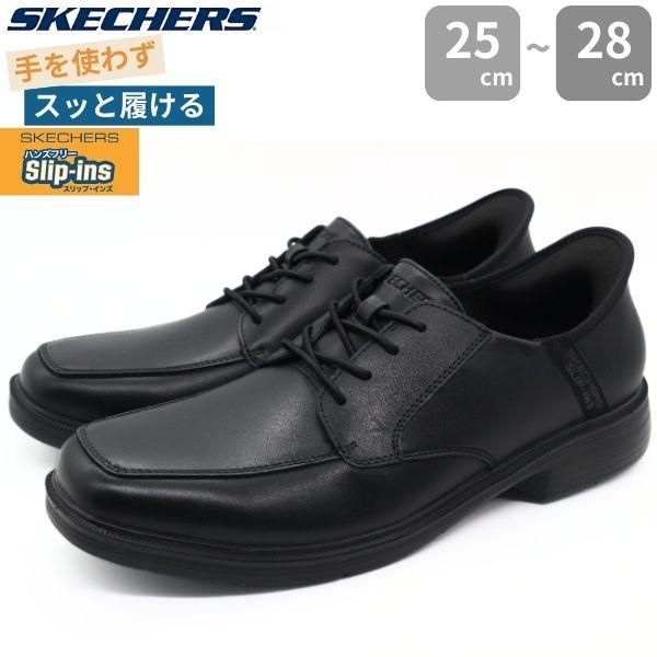 スケッチャーズ スリッポン メンズ 靴 ビジネスシューズ 革靴 本革 黒 ブラック スリップインズ ハンズフリー 履きやすい 歩きやすい 疲れにくい クッション 衝撃吸収 シンプル キャスウェル SKECHERS CASWELL 205220