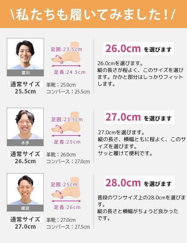取り扱いサイズ:25cm 25.5cm 26cm 26.5cm 27cm 28cm