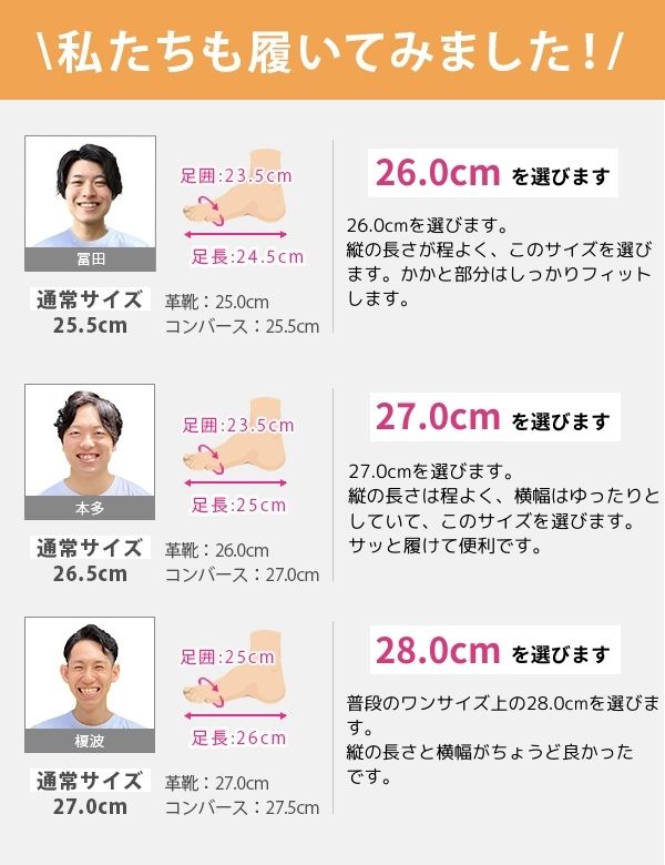 取り扱いサイズ:25cm 25.5cm 26cm 26.5cm 27cm 28cm