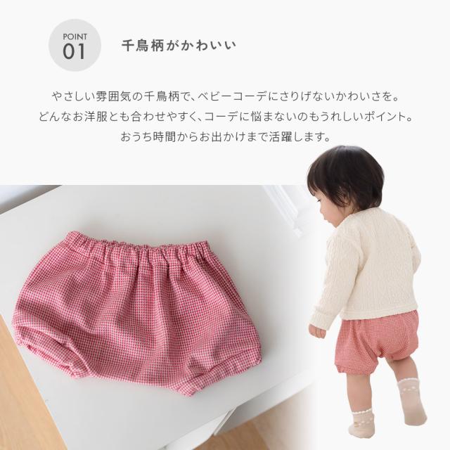 日本製 千鳥柄 かぼちゃパンツ ベビー服 保育園着 秋冬 子供服 赤ちゃん ショートパンツ ブルマ ブルマパンツ 男の子 女の子 コットン 秋 冬用