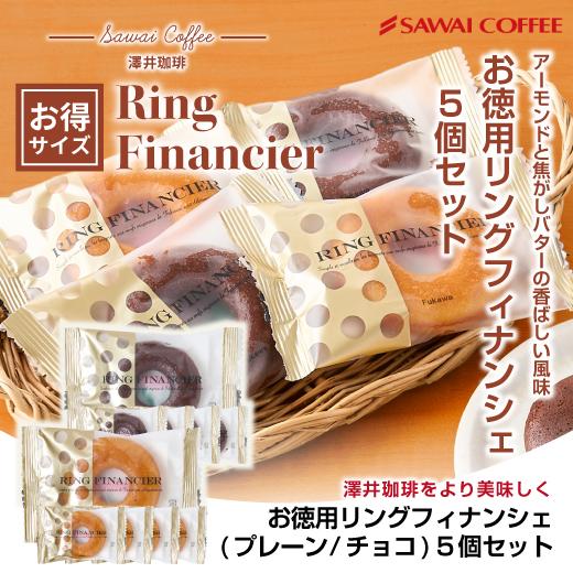 澤井珈琲 しっとり もちもち食感 リングフィナンシェ 5個入 セット プレーン チョコ お菓子 洋菓子 スイーツ バターケーキ プチギフト 個包装 女性 シンプル 甘さ控えめ コーヒーに合う 澤井スイーツ