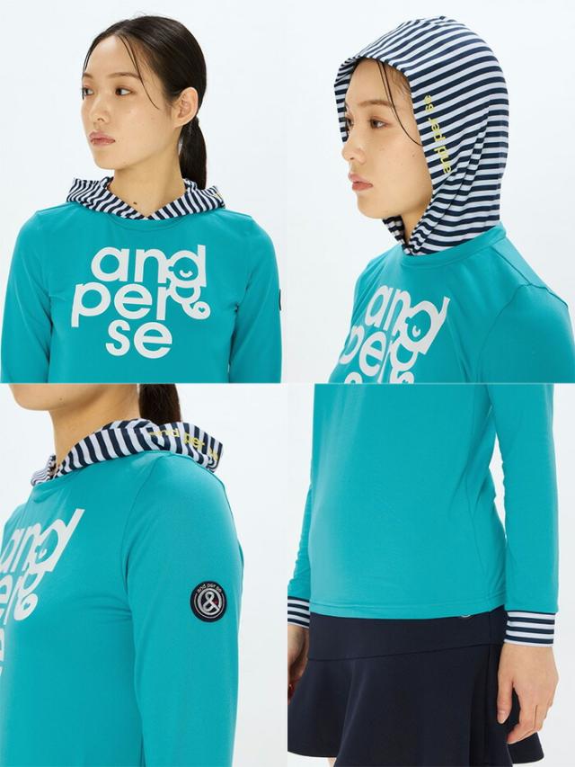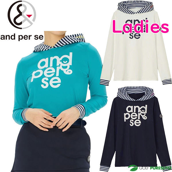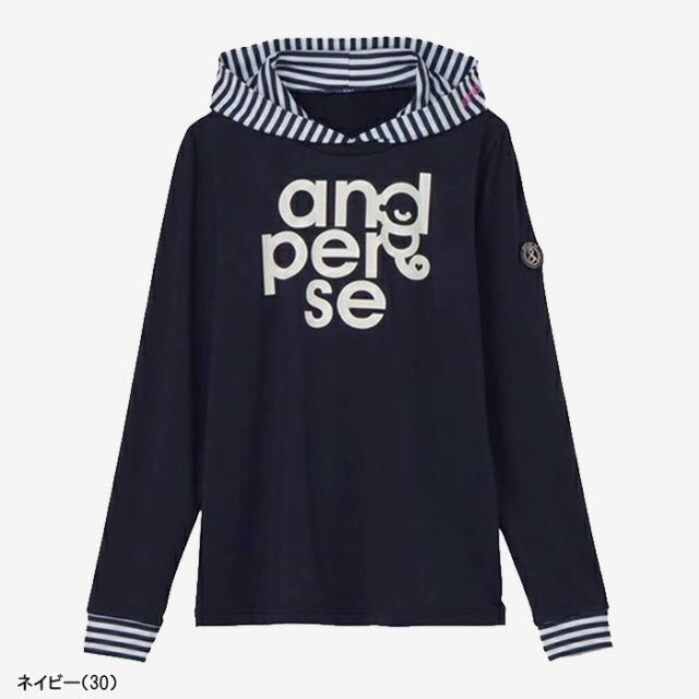 【レディース】アンパスィ 長袖 フーディーシャツ ボーダー柄スムース AFS9215X8 トップス ゴルフウェア 2025年春夏モデル and per se 春夏ウェア 女性用