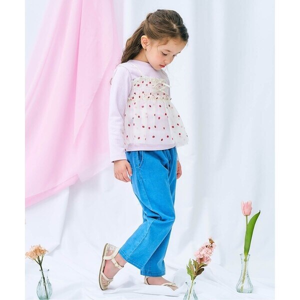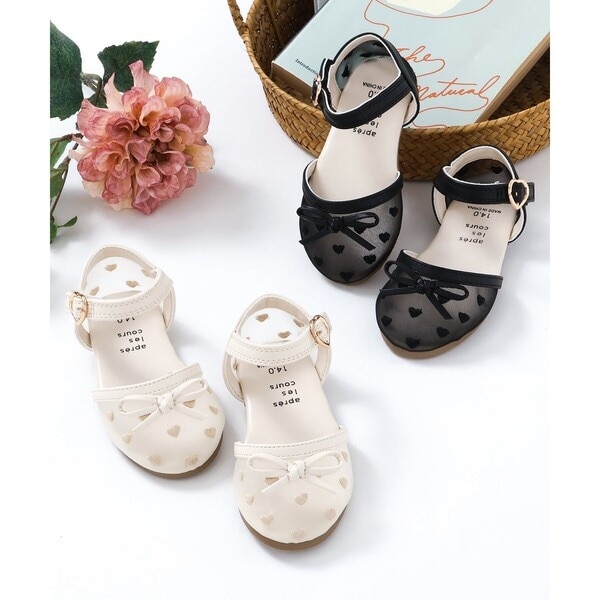apres les cours(アプレレクール)の靴「ハート刺繍メッシュサンダル」は、足元からおしゃれになれるデザイン。おようふくとのスタイリングも楽しんで。