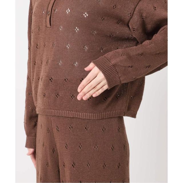 ・小さいお花のようなクロシェ柄の編地で仕立てたニットプルオーバー