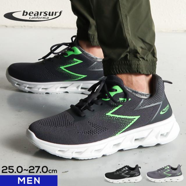 スニーカー メンズ ローカット ニットスニーカー ウォーキングシューズ メンズスニーカー 黒 クッションインソール 歩きやすい 軽量 軽い 人気 おしゃれ 通学 高校生 通勤 靴 ブラック グレー BEAR SURF BS-1083